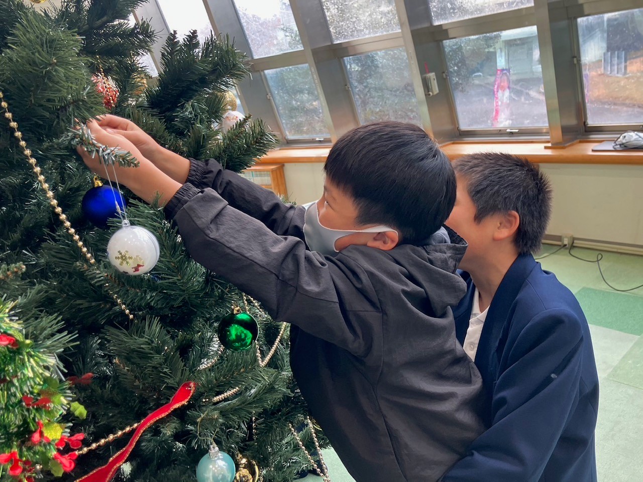 本日、豊平学園1年生・7年生の皆さんと一緒にクリスマスツリーの飾り付けを行いました!