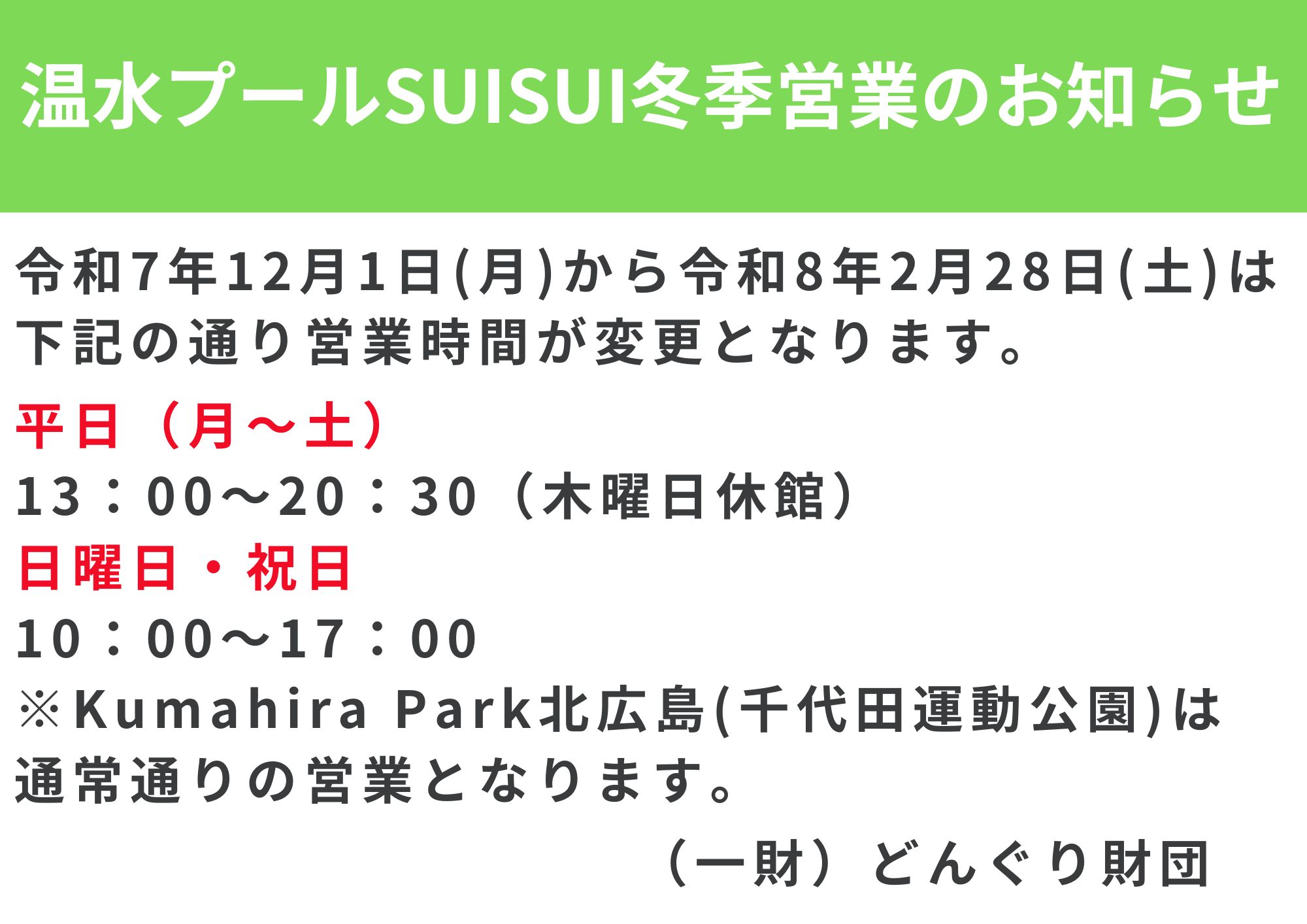 いつも豊平総合運動公園・Kumahira Park北広島(千代田運動公園)・千代田温水プールSuiSuiをご利用いただきましてありがとうございます!