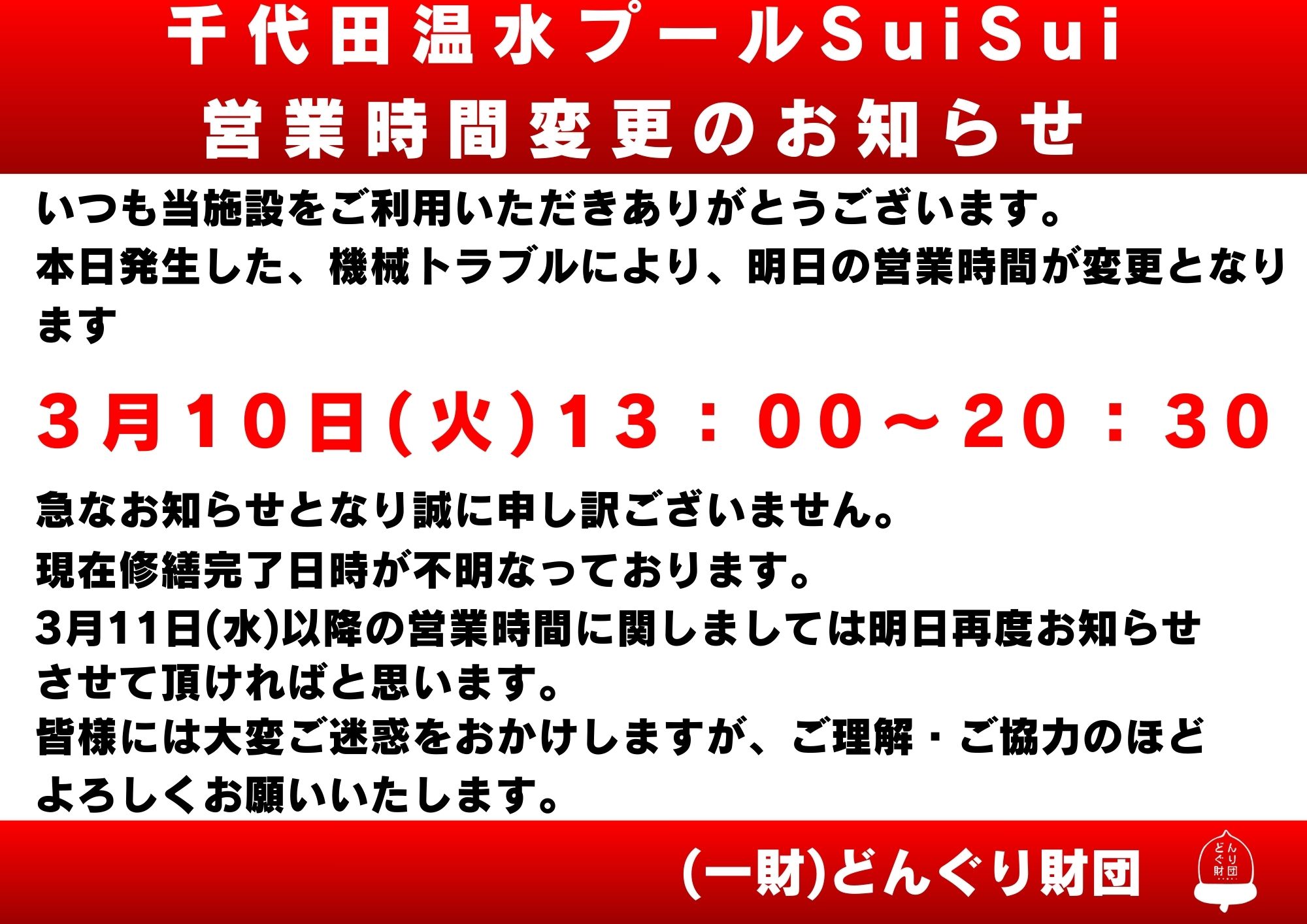 3月9日(月)に発生した、機械トラブルにより、